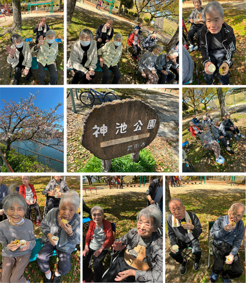 神池公園へ桜を見に行きました。少し肌寒かったのですが、桜を見た瞬間に「きれいだねー」と喜んで下さいました。